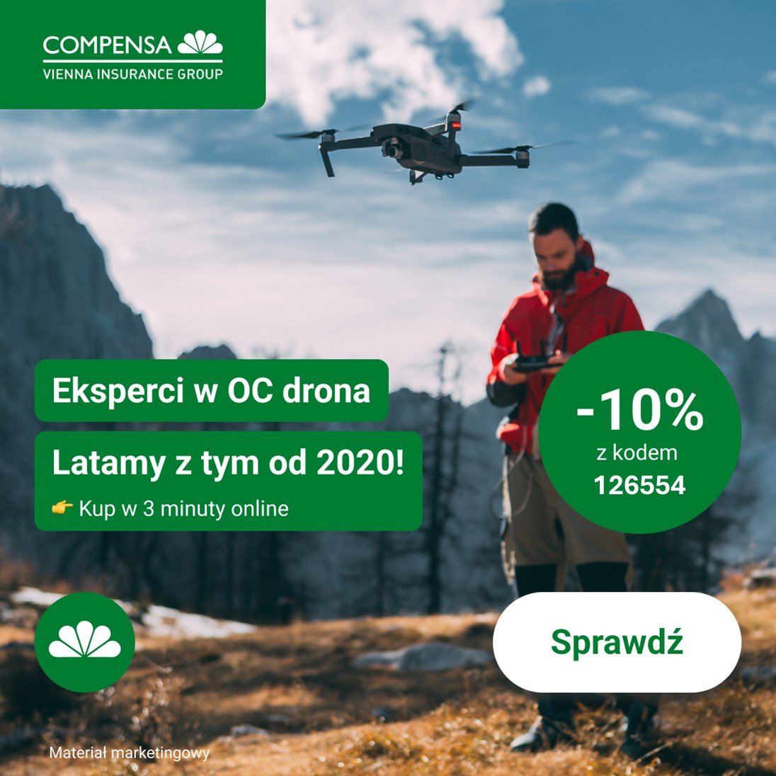 Dzięki temu zyskasz 10 procent zniżki na obowiązkowe OC operatora drona oraz dobrowolne OC pilota drona.